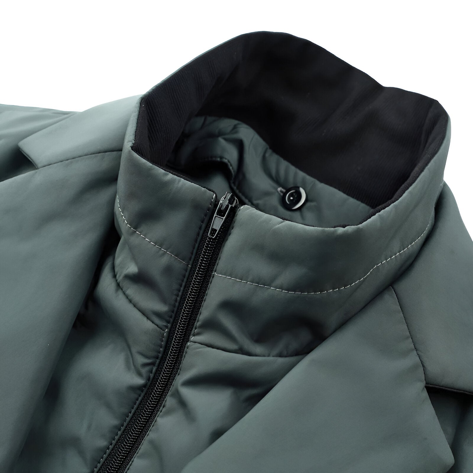 La chaqueta cortavientos Urban Focus presenta un diseño elegante, resistente al viento y al agua, que combina estilo y funcionalidad. Rellena de plumón de pato, con bolsillos laterales y un sofisticado cierre de dos botones, es perfecta para lucir con estilo y estar preparado para cualquier clima en la ciudad.