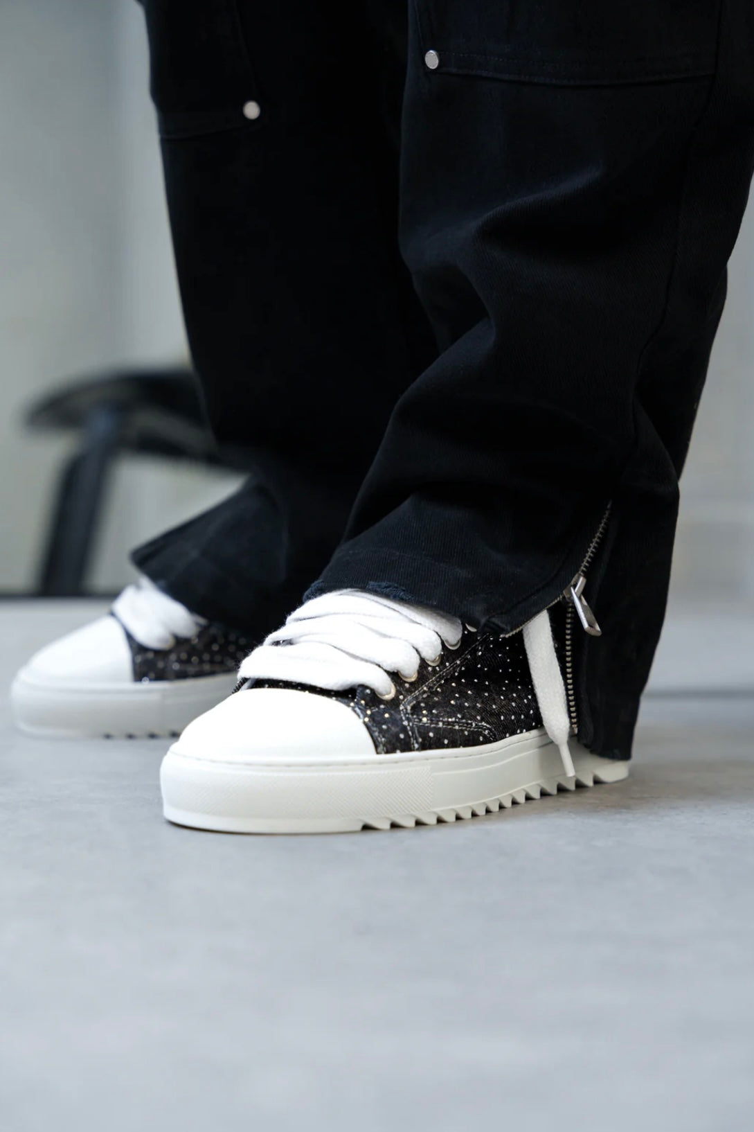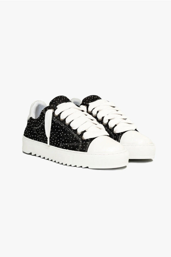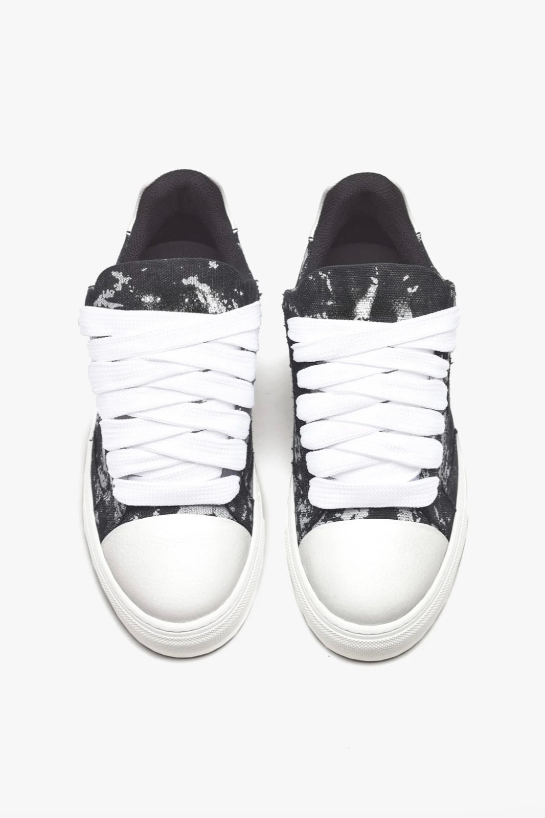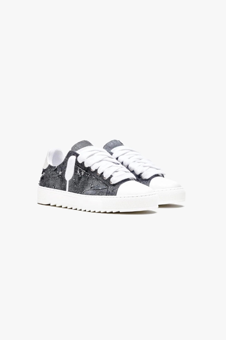Elaborados con meticulosa atención al detalle, la parte superior de lona teñida a mano a medida asegura que cada par sea una obra de arte única, ya que no hay dos pares que tengan el mismo patrón. Complementando esta característica distintiva está la firma de la puntera de cuero texturizado blanco nítido, que añade un toque de sofisticación al diseño.